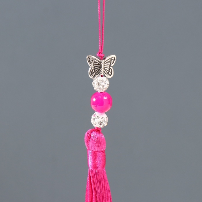 Подвеска текстиль, металл "Бабочка" фуксия 1х1,2х16,5 см
