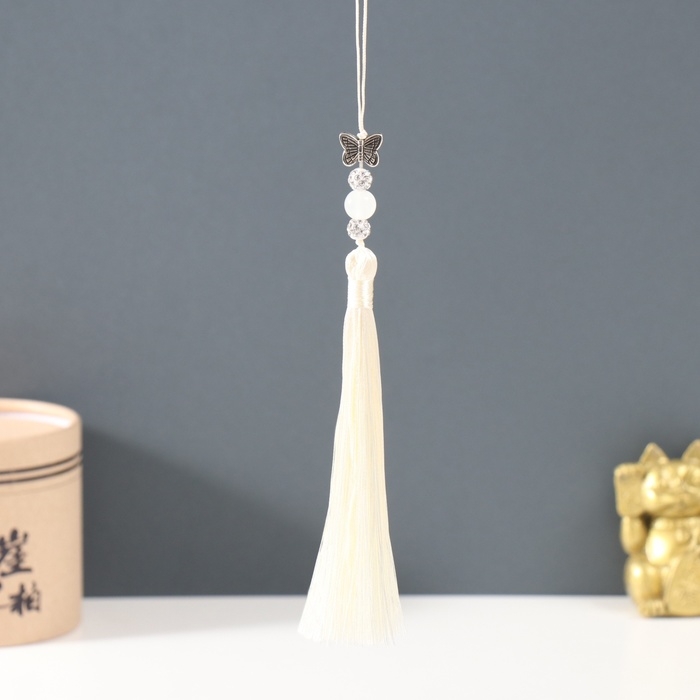 Подвеска текстиль, металл "Бабочка" слоновая кость 1х1,2х16,5 см