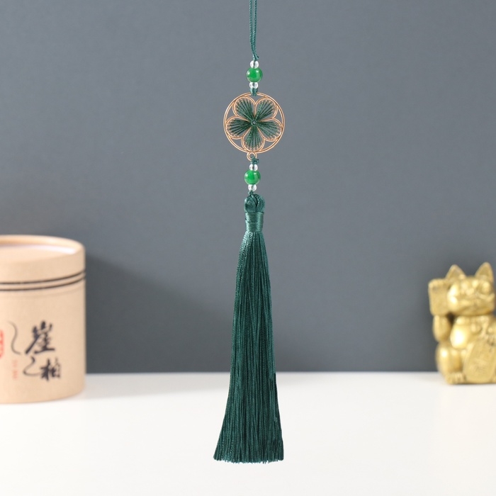 Подвеска текстиль, металл "Цветок в оправе" тёмно-зелёная 1х3х19,5 см