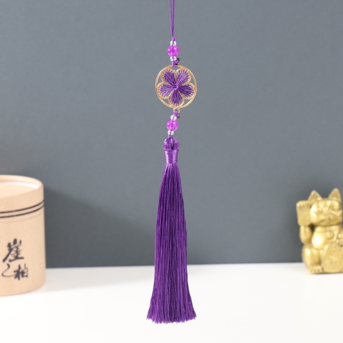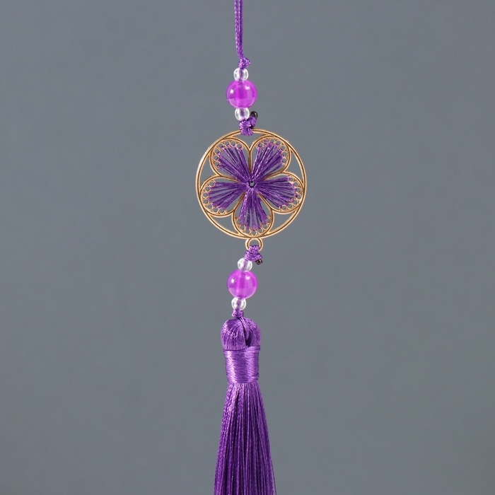 Подвеска текстиль, металл "Цветок в оправе" фиолетовая 1х3х19,5 см
