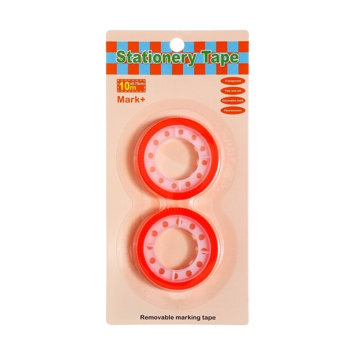 Набор 2 штуки, клейкая лента текстовыделительная (отклеиваемая) 75мм х 10м, оранжевый флуоресцентный