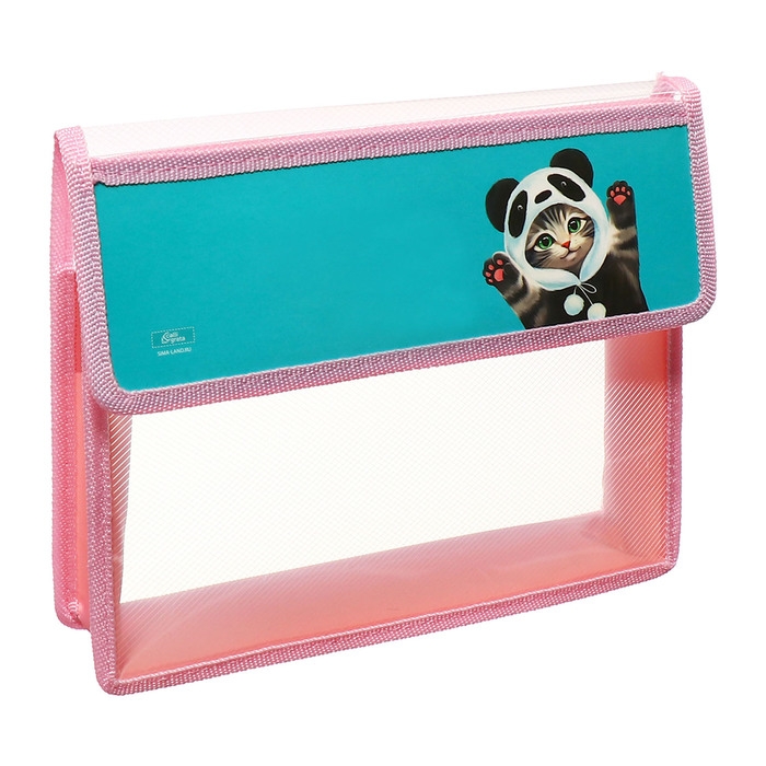 Папка для тетрадей А5 (230 х 190 х 50 мм), с клапаном на липучке, пластик/текстиль, Calligrata, "Котик панда"