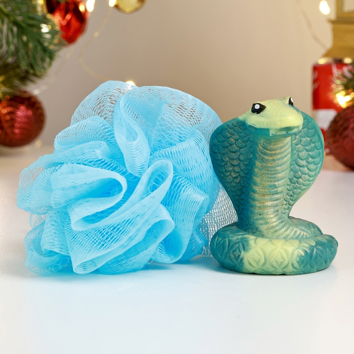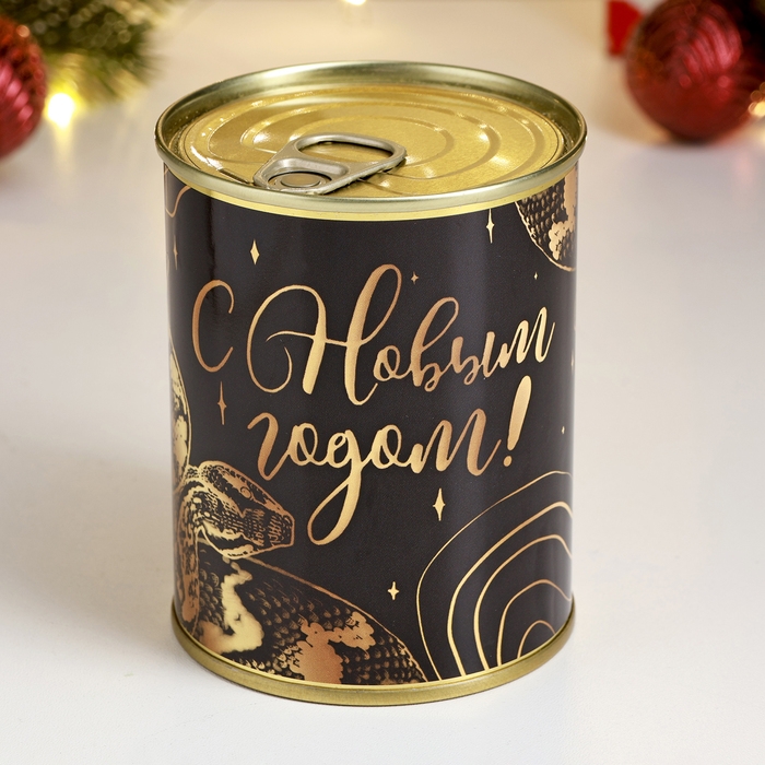 Новый год. Символ 2025. Набор в консервной банке "Золотой змей" черная, мыло + мочалка