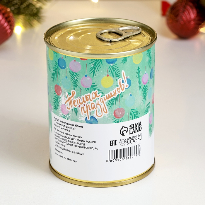 Новый год. Символ 2025. Набор в консервной банке "Теплых праздников" змея мыло + мочалка