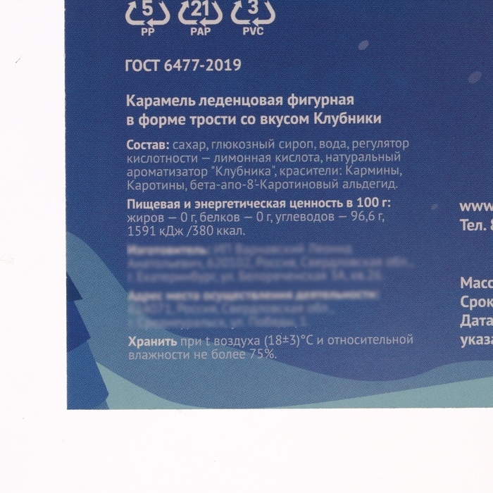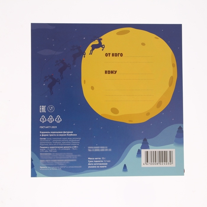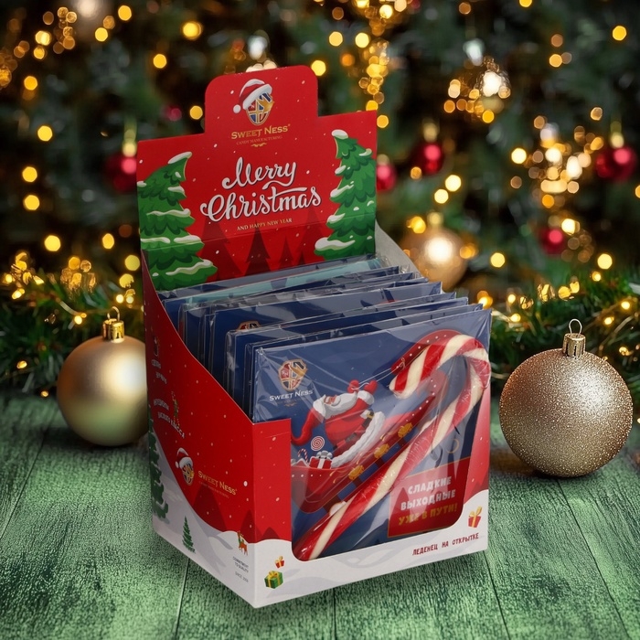 Новый год. Карамель леденцовая фигурная Sweet Ness "Открытка с тростью", 30 г