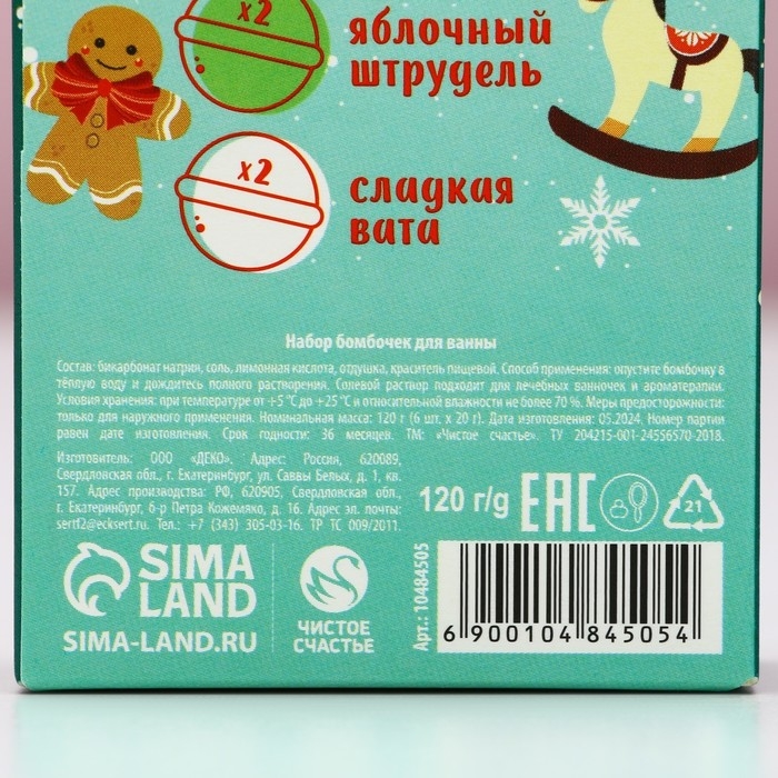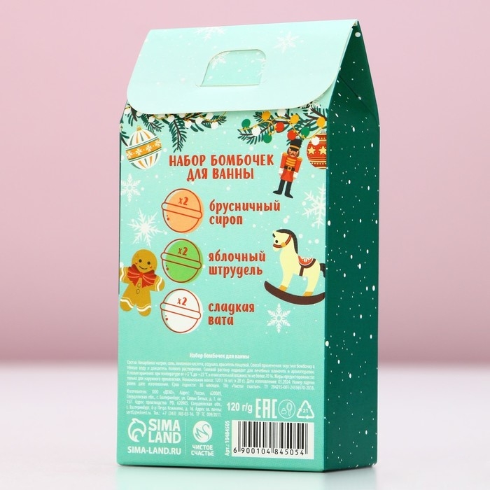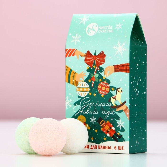 Подарочный набор косметики «Весёлого Нового Года», бомбочки для ванны, 6 х 20 г, аромат брусничного сиропа, сладкой ваты и яблочного штруделя, ЧИСТОЕ СЧАСТЬЕ
