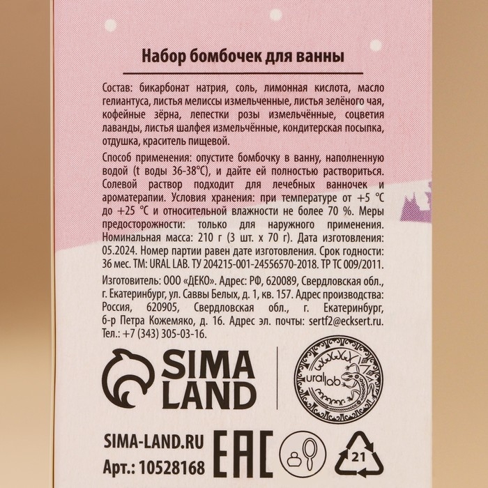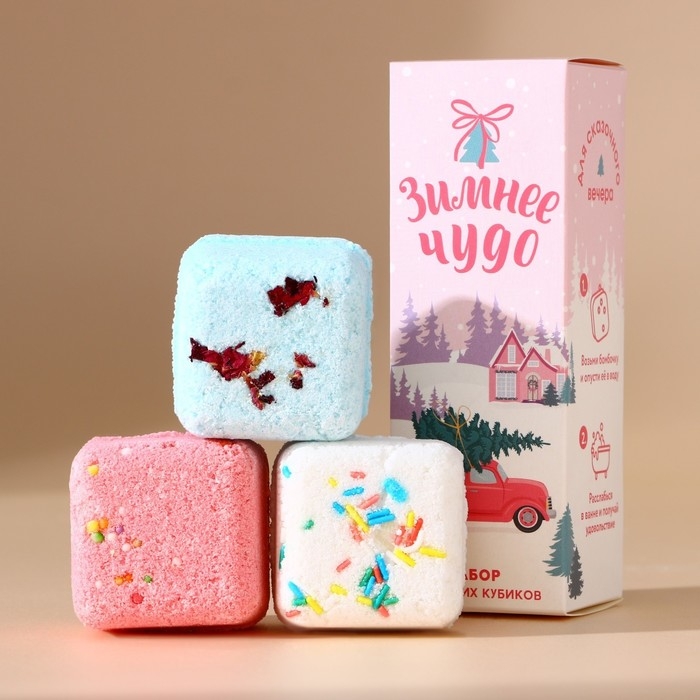 Подарочный набор косметики «Зимнее чудо», бомбочки для ванны с добавками, 3 х 70 г, аромат ванили, Новый Год
