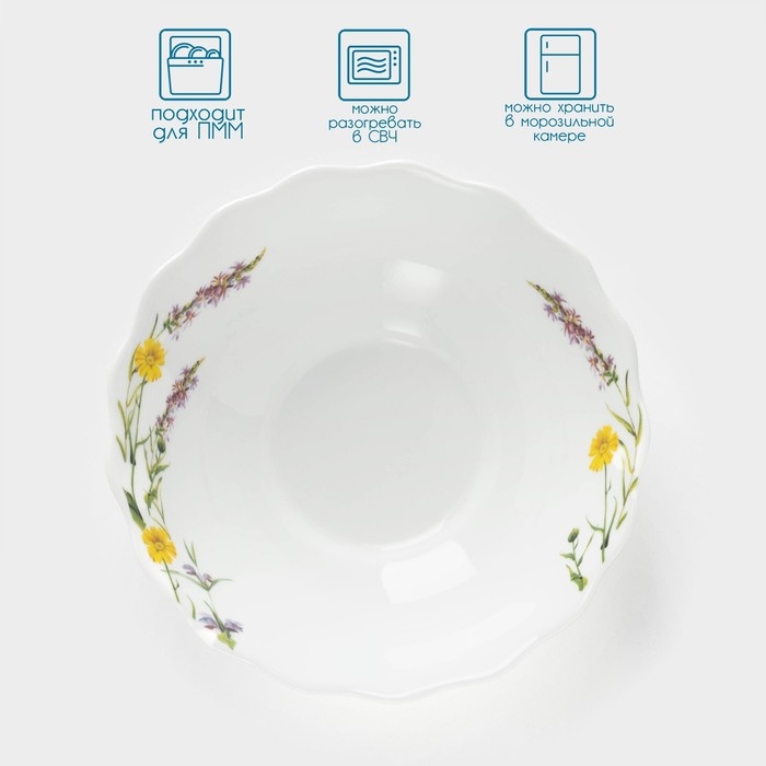 Салатник Avvir «Полевые цветы», 430 мл, d=15,5 см, стеклокерамика, цвет белый