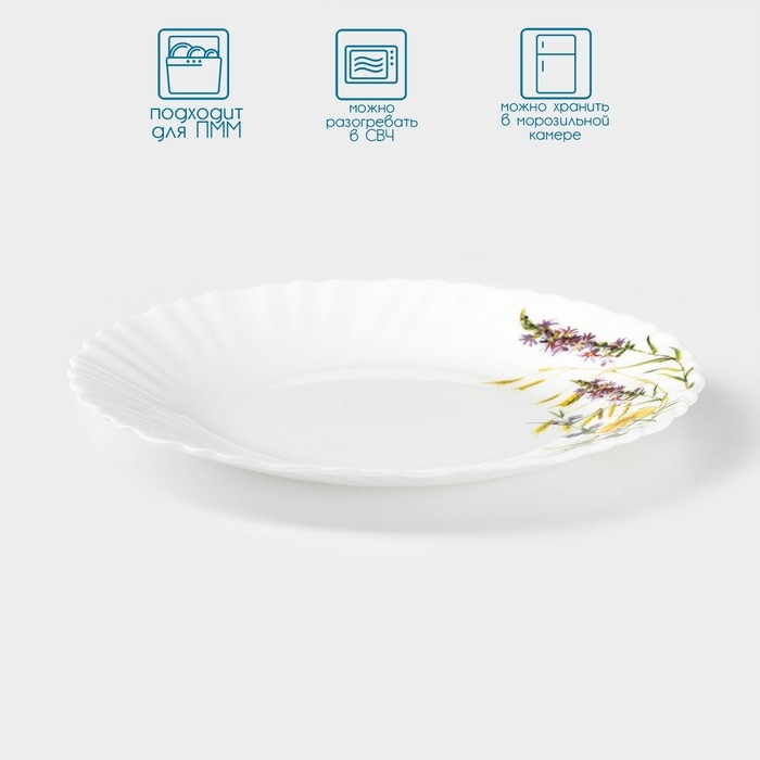 Тарелка десертная Avvir «Полевые цветы», d=19 см, стеклокерамика, цвет белый
