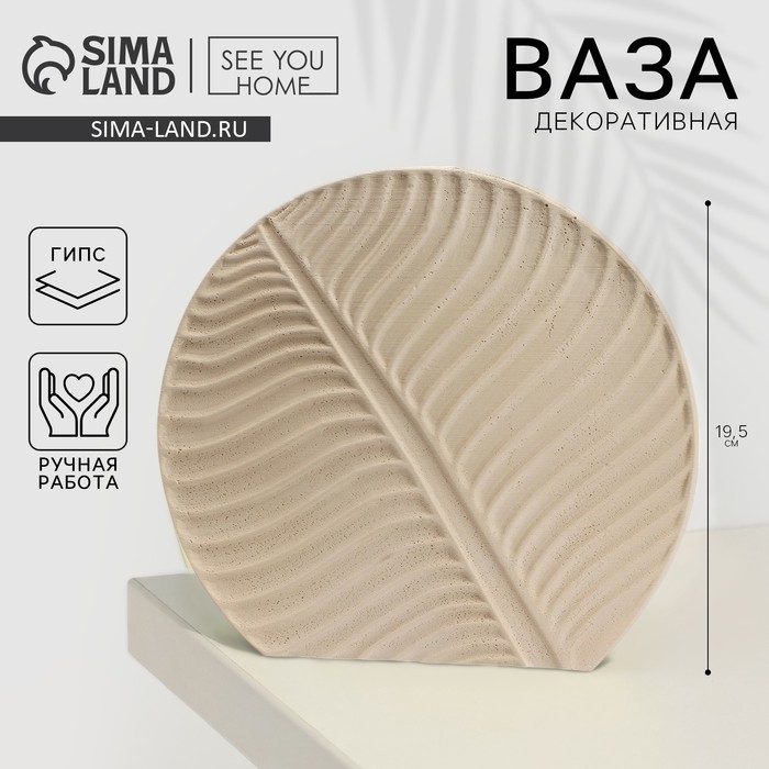 Ваза для цветов декоративная «Лист», бежевая, 19,5 х 20,7 х 3 см