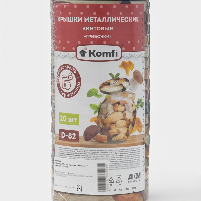 Набор крышек ТО-82 мм Komfi «Грибочки», металл, 20 шт