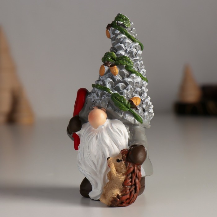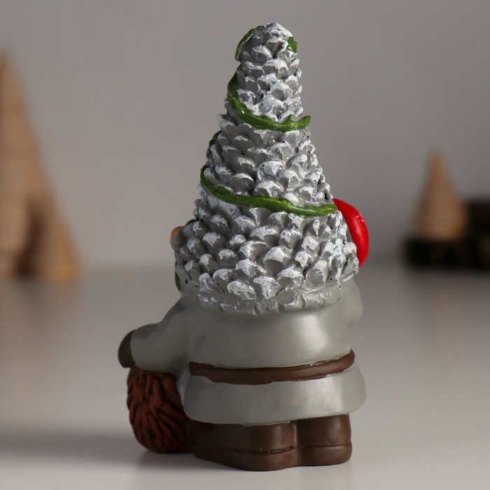 Сувенир полистоун "Гном в шапке с шишками, с ёжиком и леденцом" 5,5х4,5х10,5 см