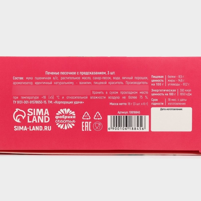 Печенье с предсказанием «Знак судьбы», 1 шт.