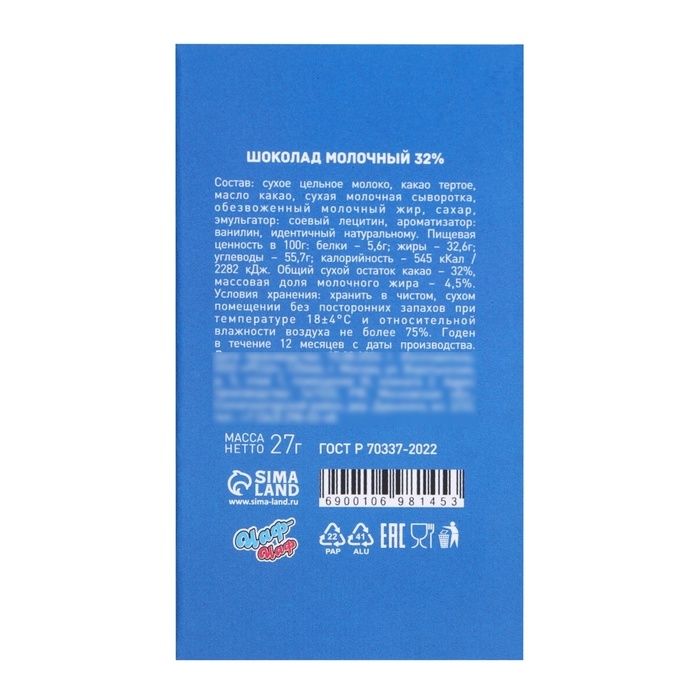 Шоколад молочный «Халява»: 27 г.