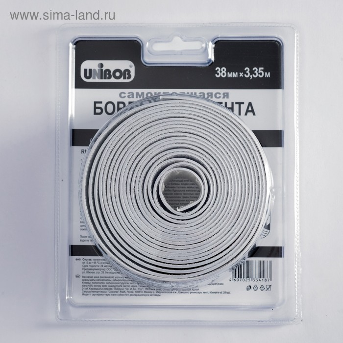 Самоклеящаяся бордюрная лента для ванн и раковин UNIBOB 38мм х 3,35м белая