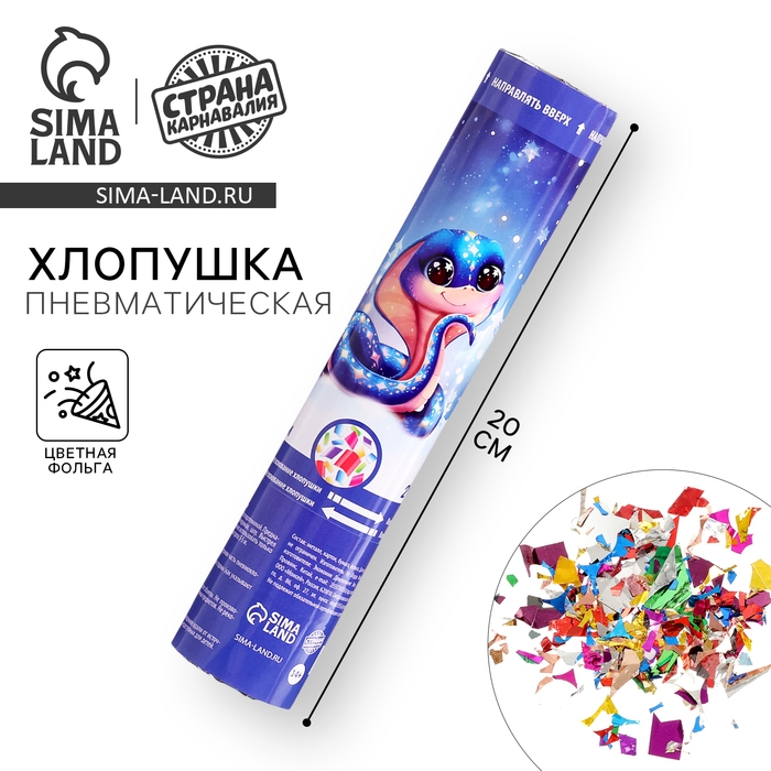 Новогодняя хлопушка пневматическая «Змейка», 20 см, на новый год