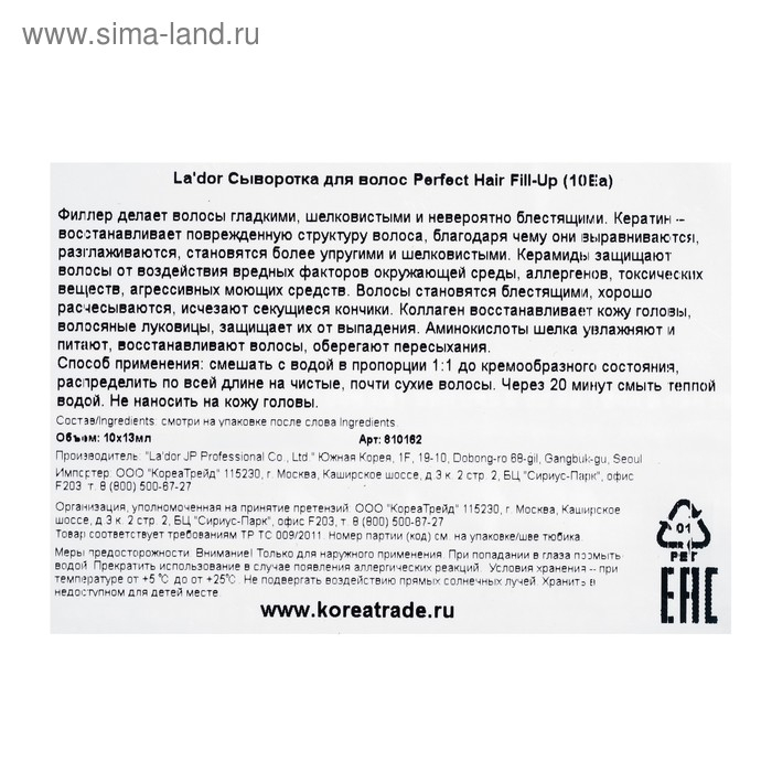 Филлер для восстановления волос La'dor Perfect Hair Fill-Up, 10 шт