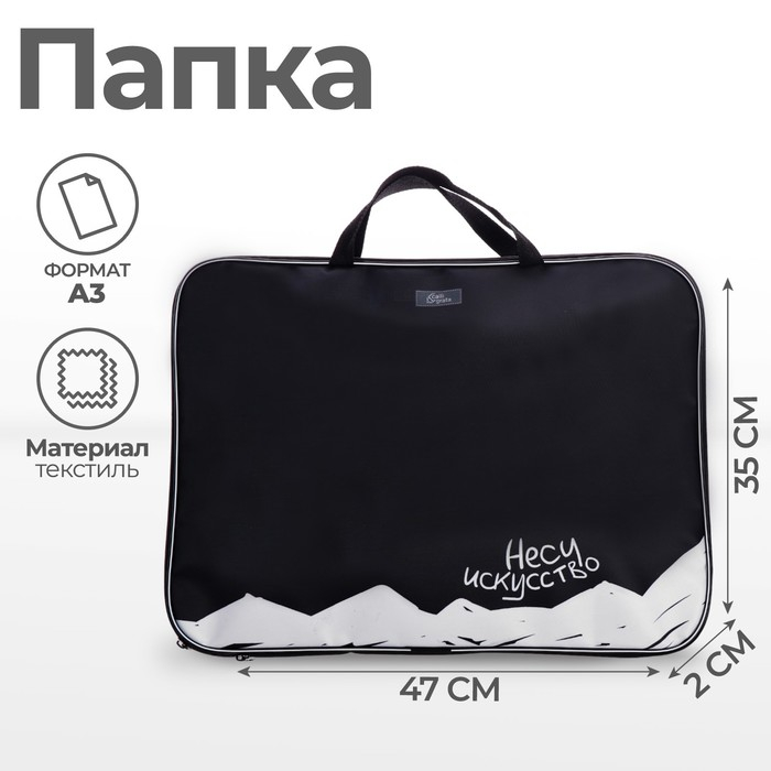 Папка для чертежей и рисунков А3, 470 х 350 х 20 мм, с ручками, текстильная, Calligrata, "Несу искусство"