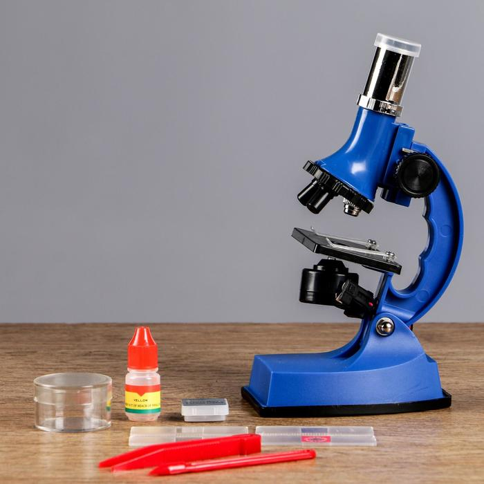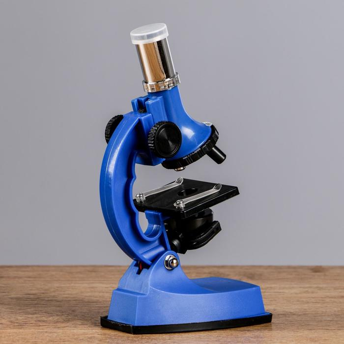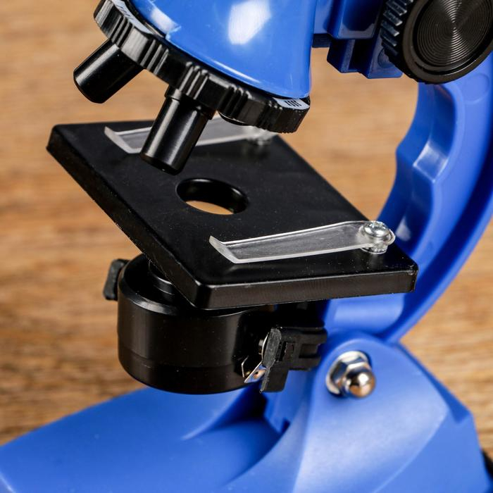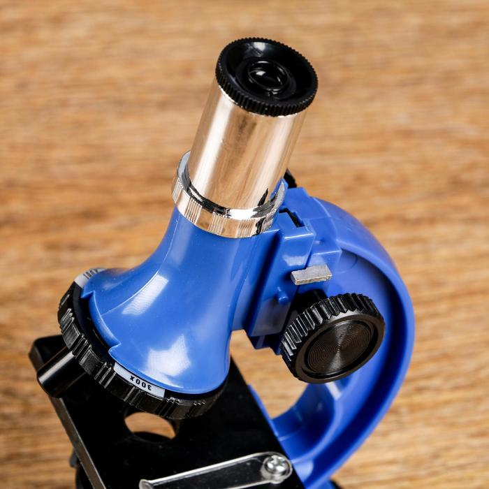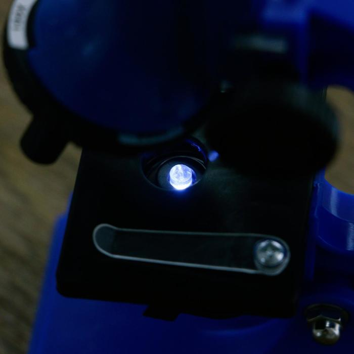 Микроскоп, кратность увеличения 600х, 300х, 100х, с подсветкой, 2АА, синий