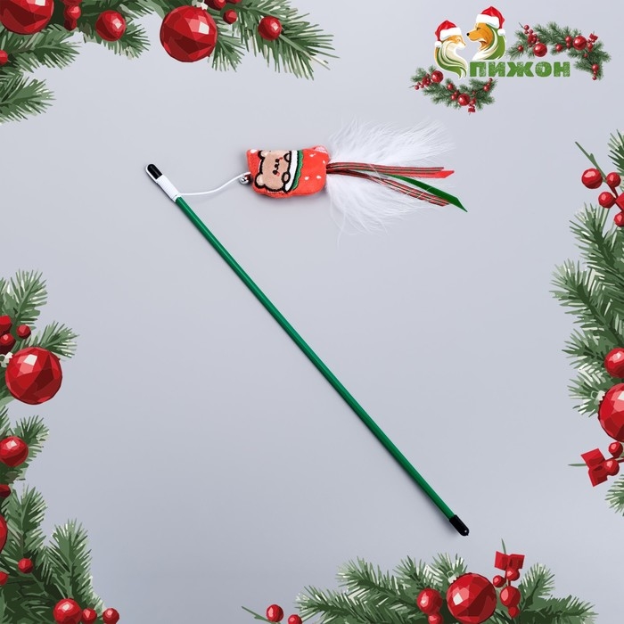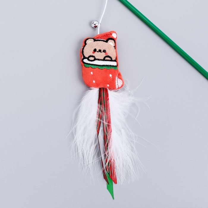 Новый год. Дразнилка-удочка для кошек с бубенчиком "Медведь", 40 см