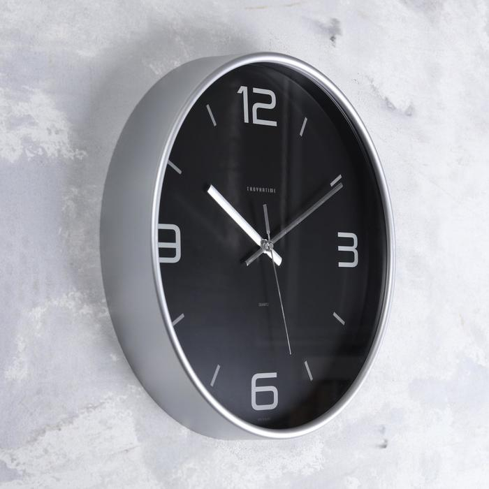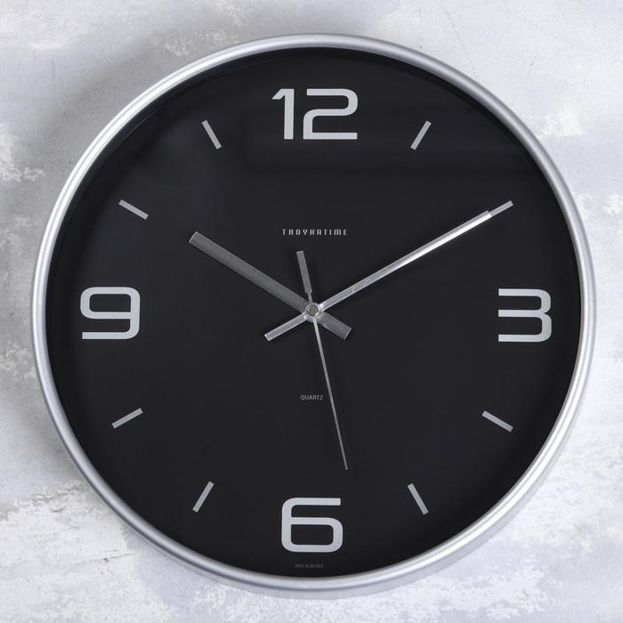 Часы настенные, серия: Классика, плавный ход, d-30.5 см, черные, цифры серебро