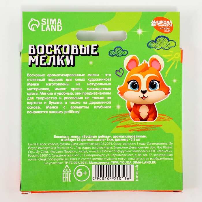 Восковые мелки - карандаши ароматизированные «Весёлые ребята», 12 цветов