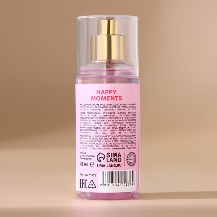 Мист для тела Happy Moments, 88 мл, аромат новогодней карамели, Новый Год