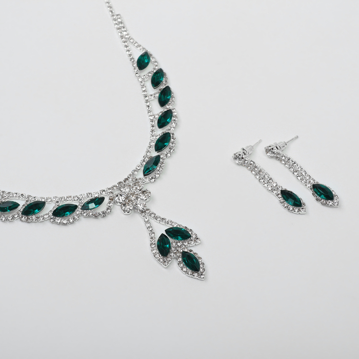 Набор 2 предмета: серьги, колье «Листопад» ромб, цвет изумрудно-белый в серебре, 45 см