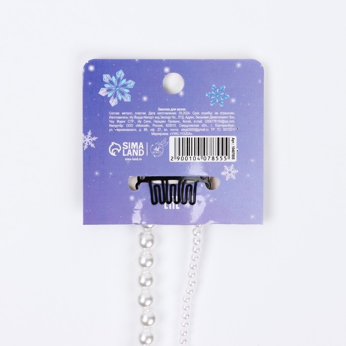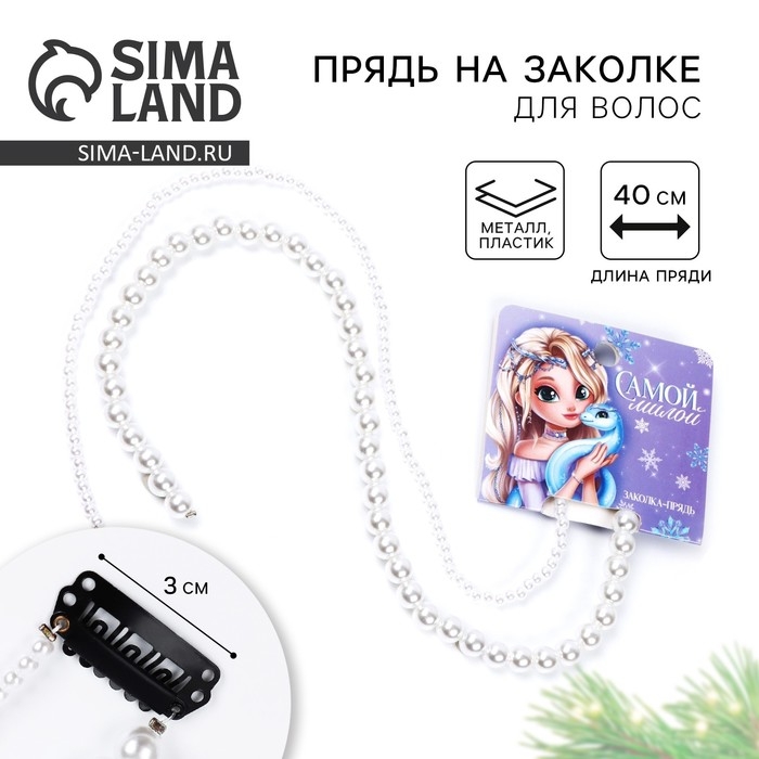 Заколка прядь с жемчугом новогодняя «Самой милой», на Новый год, 7 х 6,4 см