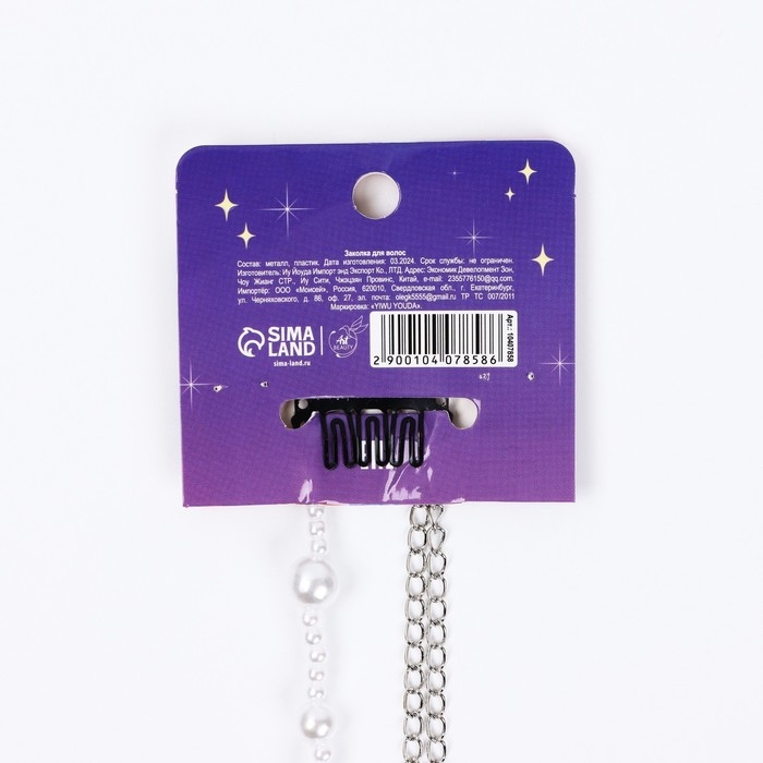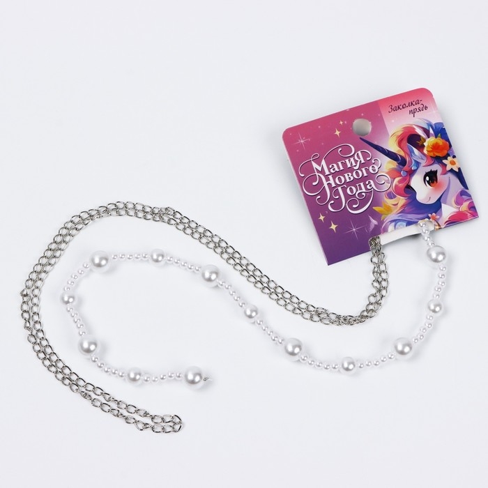 Заколка прядь с жемчугом новогодняя «Магия Нового года», на Новый год, 7 х 6,4 см
