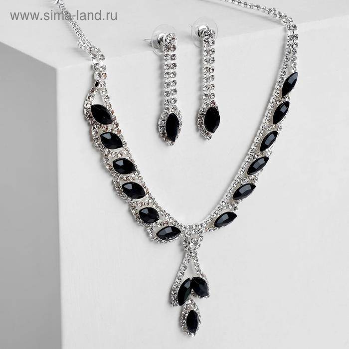 Набор 2 предмета: серьги, колье «Листопад» ромб, цвет чёрно-белый в серебре, 45см