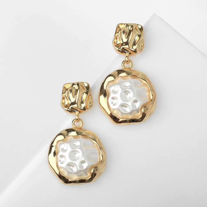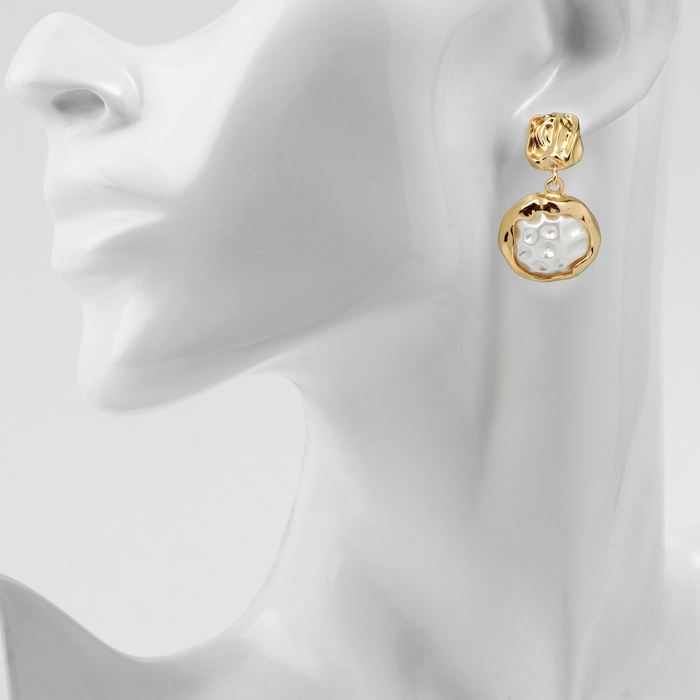 Серьги с жемчугом «Эксклюзив» мятый круг, цвет золото