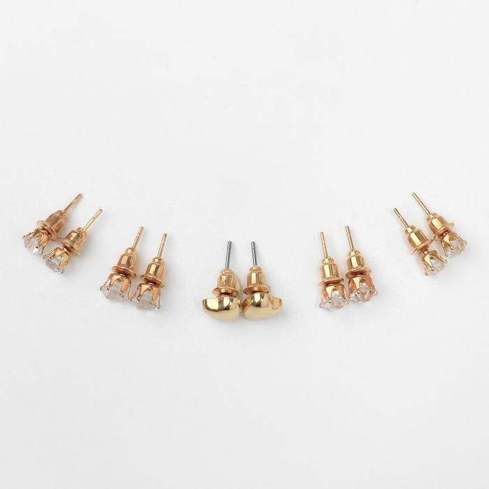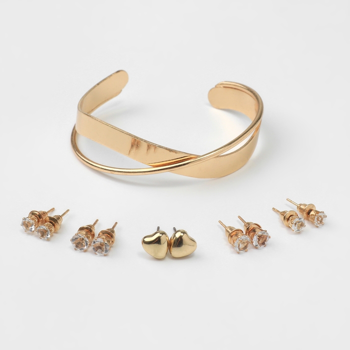 Набор 6 предметов: 5 пар серьги,1 браслет «Сердце», цвет белый в золоте