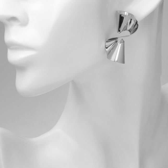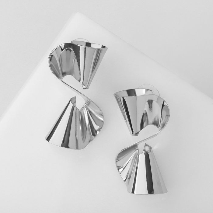 Серьги металл «Бант» гофрированный, цвет серебро