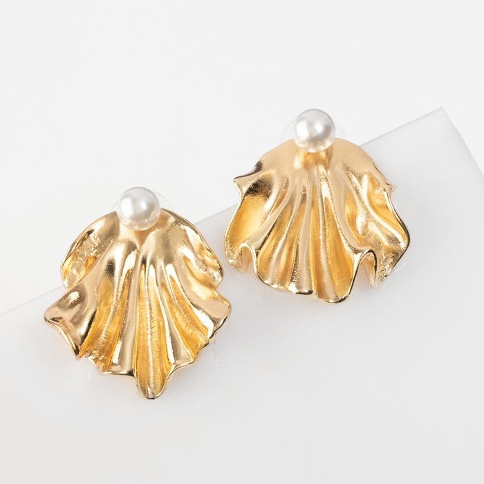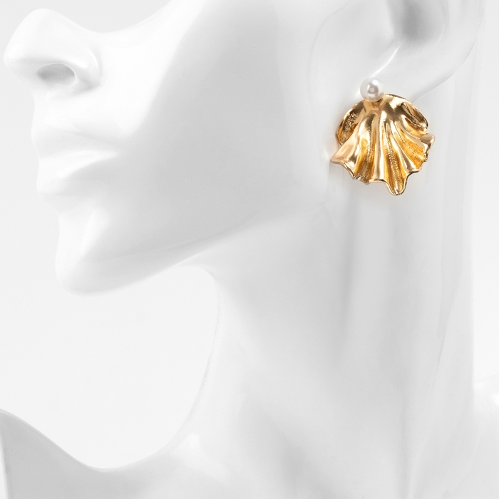 Серьги с жемчугом «Жемчуг» ракушка, немо, цвет золото