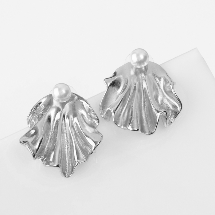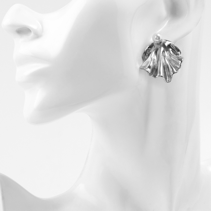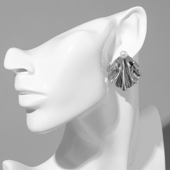 Серьги с жемчугом «Жемчуг» ракушка, немо, цвет серебро