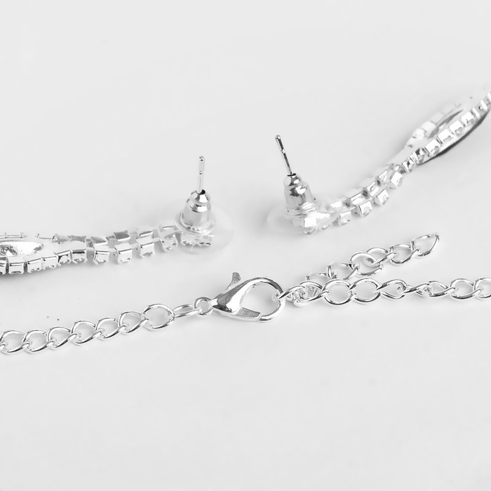 Набор 2 предмета: серьги, чокер «Лёд» 4 ряда, цвет белый в серебре, 44,5 см