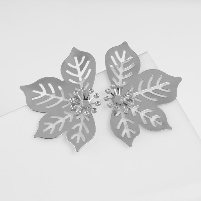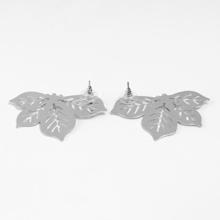 Серьги металл «Стиль» лист, клён, цвет серебро