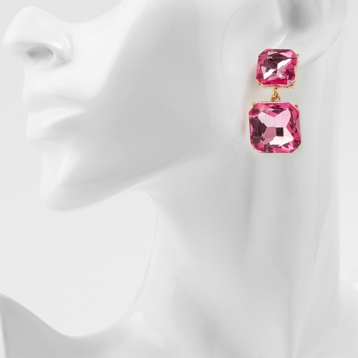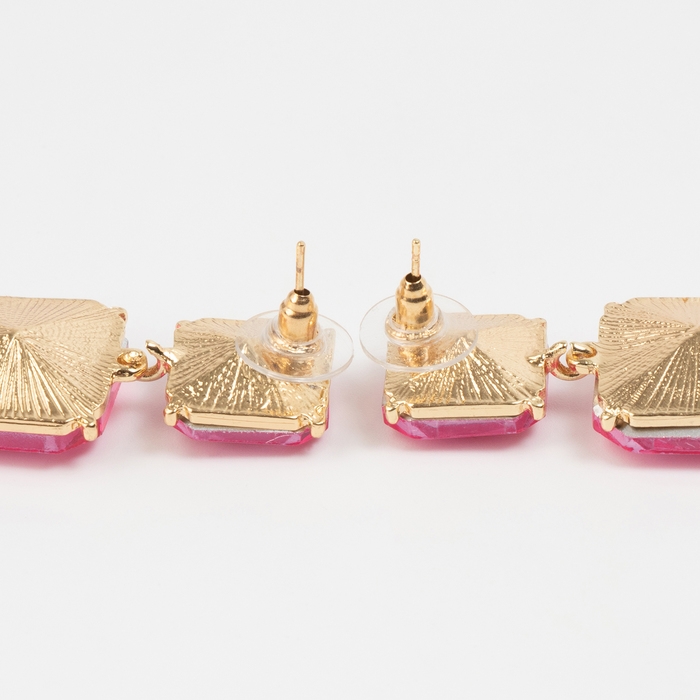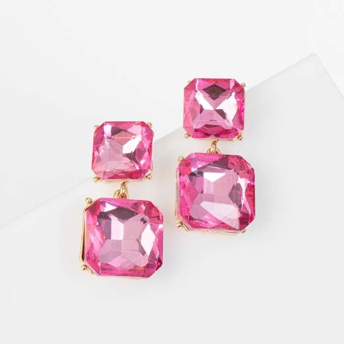 Серьги со стразами «Иллюзион» полутона квадраты, цвет розовый в золоте