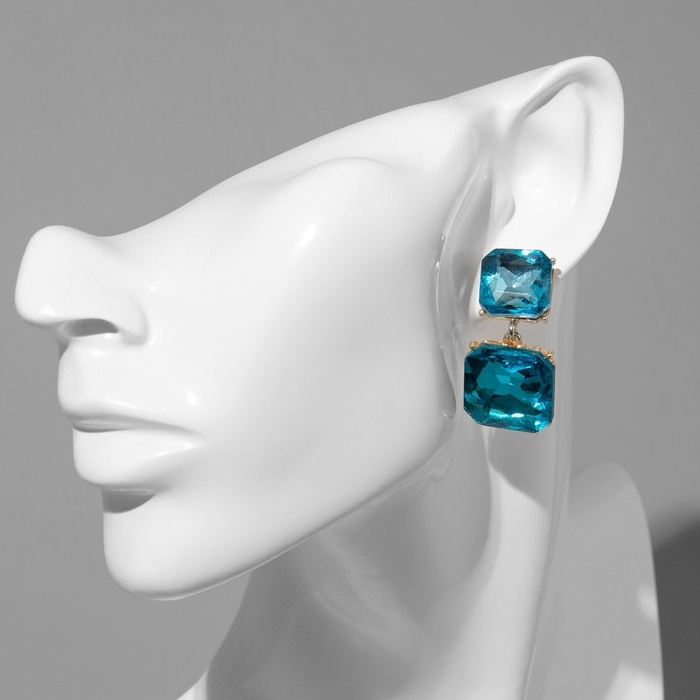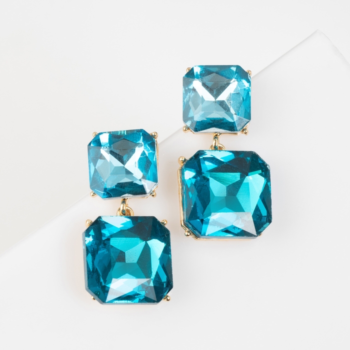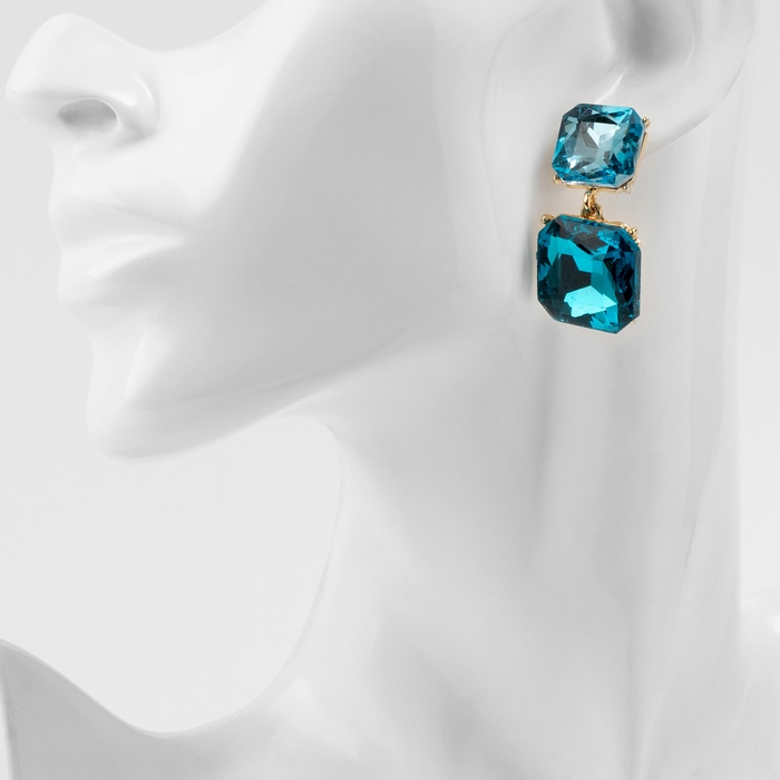 Серьги со стразами «Иллюзион» полутона квадраты, цвет бирюзовый в золоте