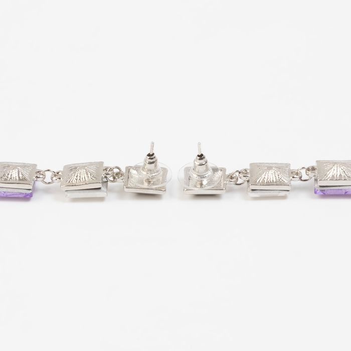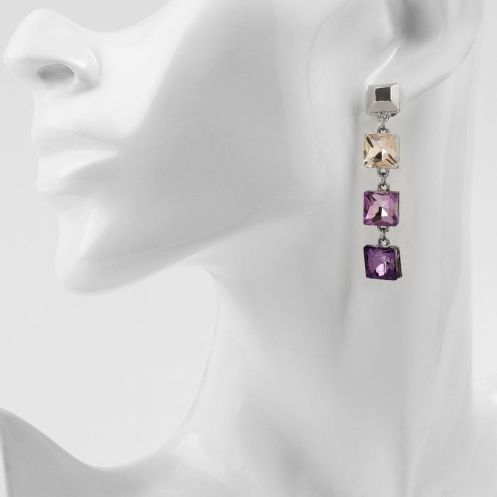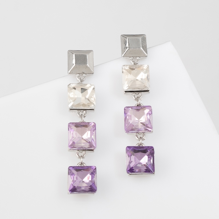 Серьги со стразами «Блум» квадраты тёмные, цветные в серебре