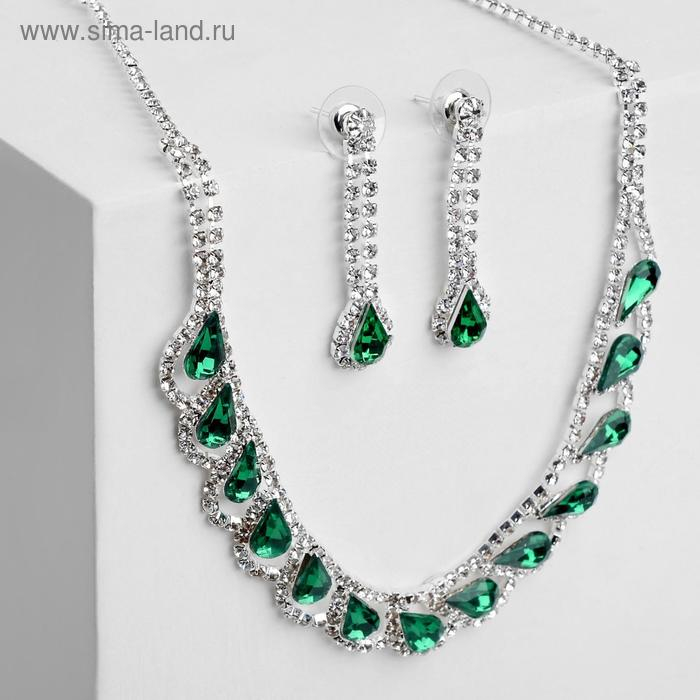 Набор 2 предмета: серьги, колье «Листопад» капли, цвет зелёно-белый в серебре, 45 см