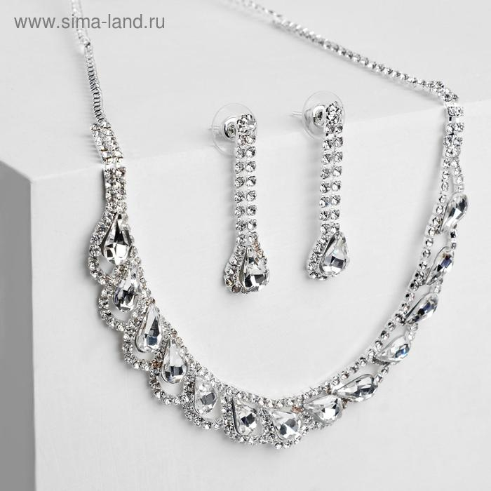 Набор 2 предмета: серьги, колье «Листопад» капли, цвет белый в серебре, 45см