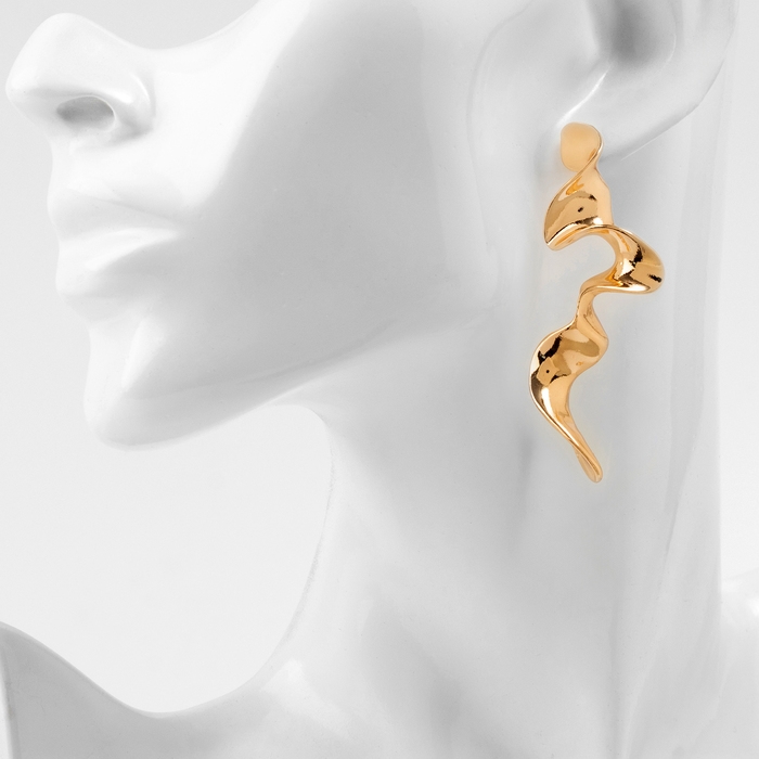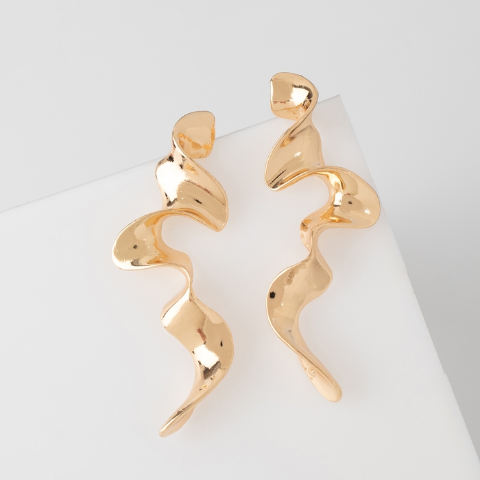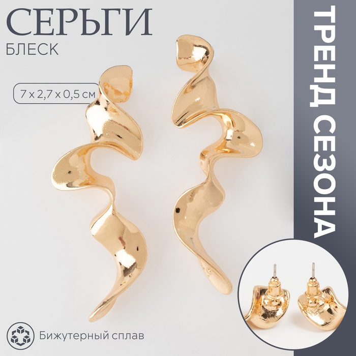 Серьги металл «Блеск» волна, цвет золото