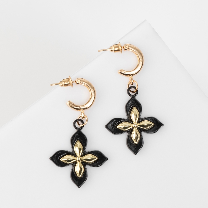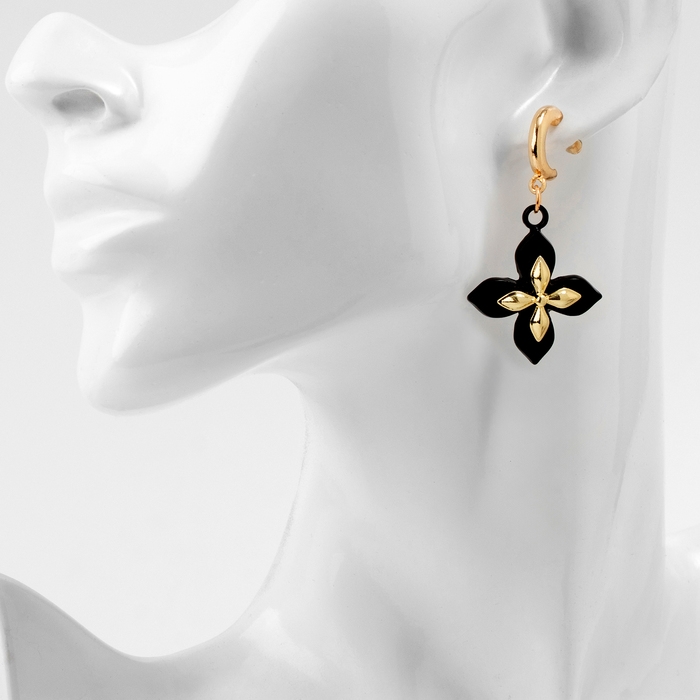 Серьги металл «Блеск» четырёхлистник, цвет золото