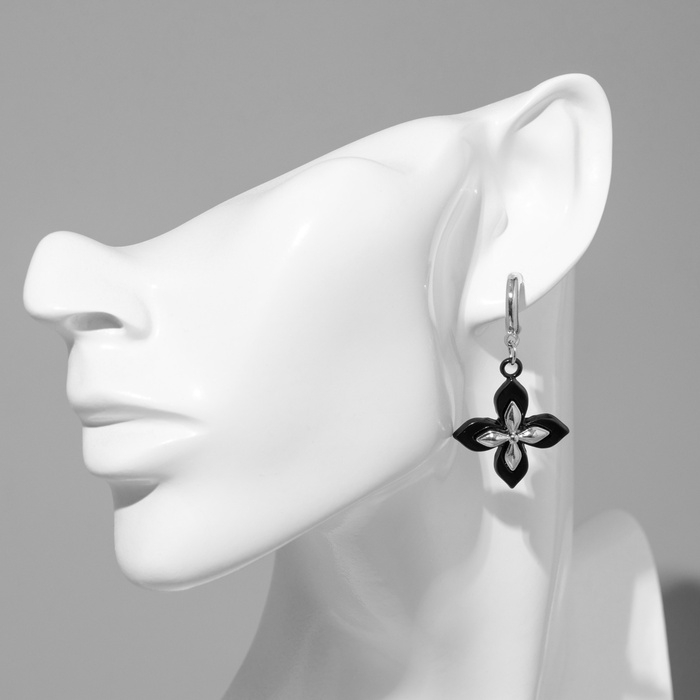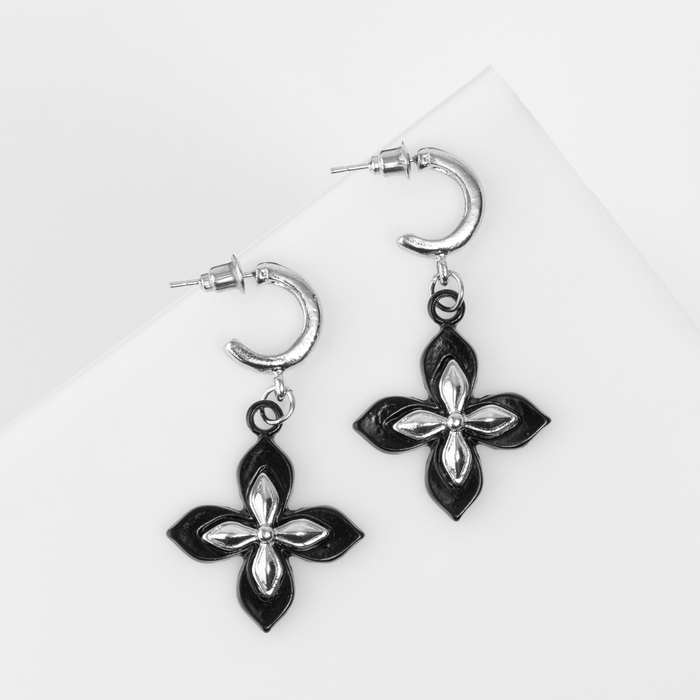 Серьги металл «Блеск» четырёхлистник, цвет серебро