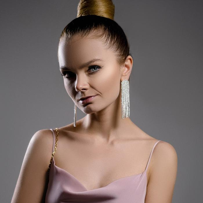 Серьги висячие со стразами «Голливуд» полукруг, 6 рядов, цвет белый в золоте, 19,5 см
