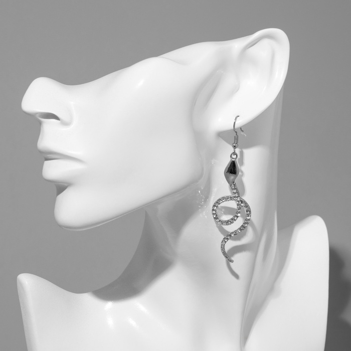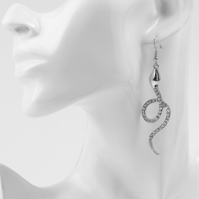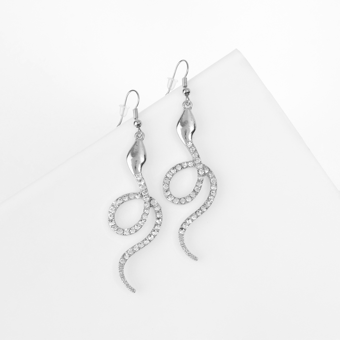 Новый год! Символ года 2025! Серьги висячие со стразами «Змея» извивающаяся, цвет серебро