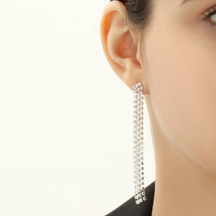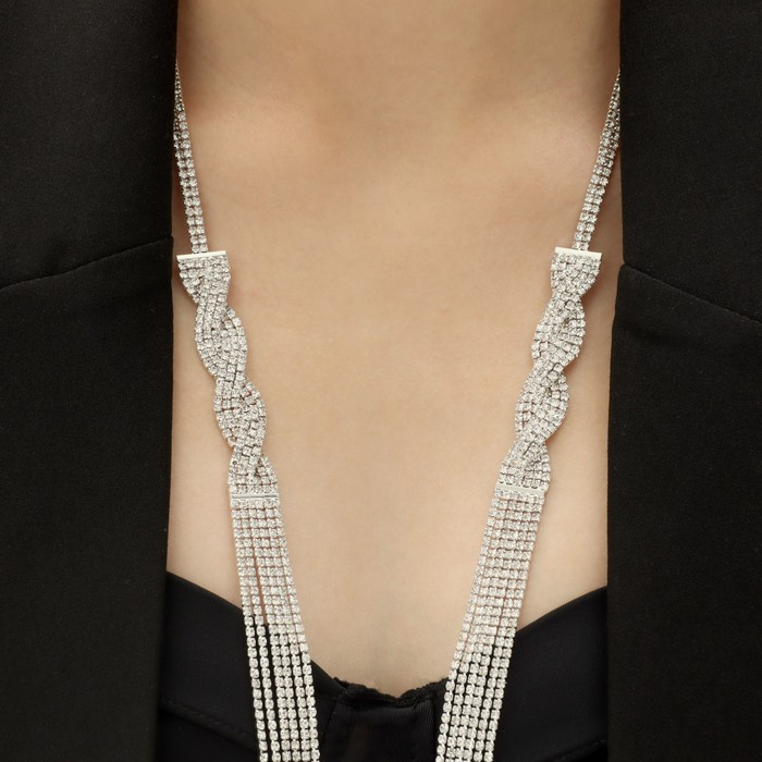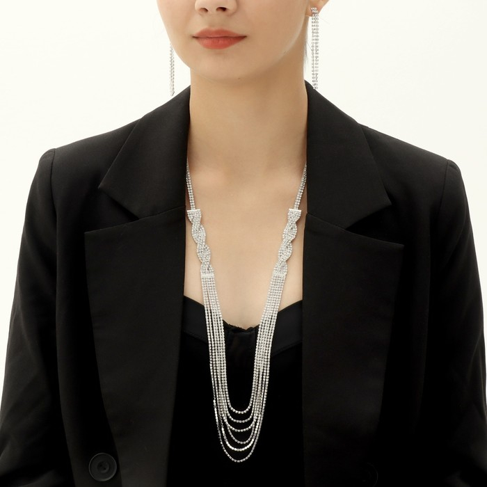 Набор 2 предмета; серьги, колье «Легкий флирт» дождик, белый в серебре, 40 см