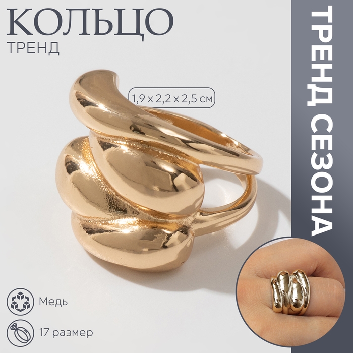 Кольцо металл «Тренд» капли, цвет золото, размер 17